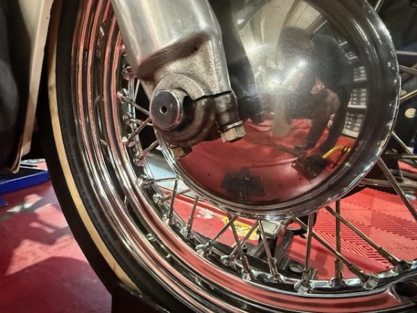 今回はフロントフォークのオイル漏れ、タイヤ交換等の作業で