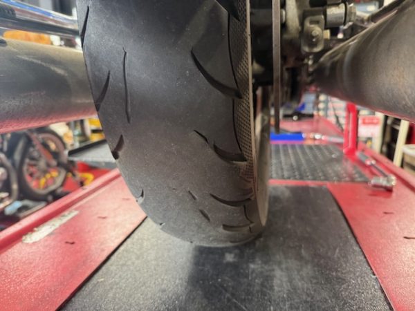 真ん中がツルツルに減ってしまったリアタイヤ(汗
